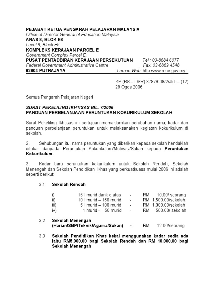 Surat Pekeliling Ikhtisas Bil32006. BANTUAN KOKURIKULUM SEKOLAH BKK 1. Bahagian Pengurusan Sekolah Harian Page 11 Unit Kokurikulum 2021 Surat Pekeliling Ikhtisas Bil72006 Panduan Perbelanjaan Peruntukan Kokurikulum Sekolah 28082007.